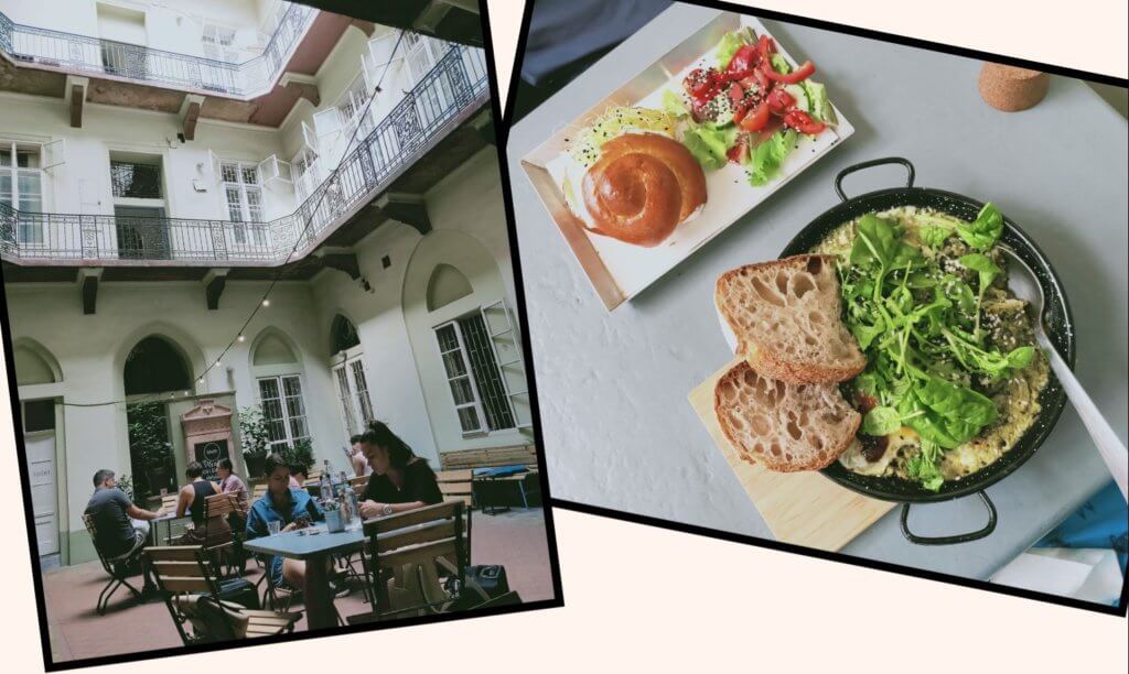 The great thing about staying with local people is not only the company and conversation, but the great tips. Today the recommendation was breakfast at Fekete. Following instructions, we arrived at an entranceway to a courtyard off the main shopping strip. In the courtyard tables and chairs were set out.