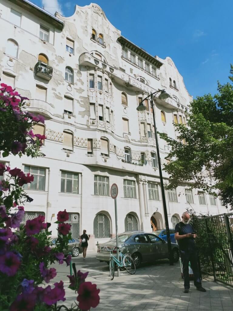 A last wander around the local streets looking for a supermarket to gather snacks for the train tomorrow. Pass through the narrow, cobbled streets lined with multi-storied earth-coloured buildings. Stopped for coffee in a tiny hole-in-the-wall café. Passed by my favourite building on Gutenberg Ter – a shabby chic, off white, art-nouveau façade of curves rather than sharp edges. All giving a slightly Gaudi effect. The effect was enhanced by the multiple windows of many shapes. A fascinating story – the building was initially built by the Hungarian Association of Book Printers and Typefaces