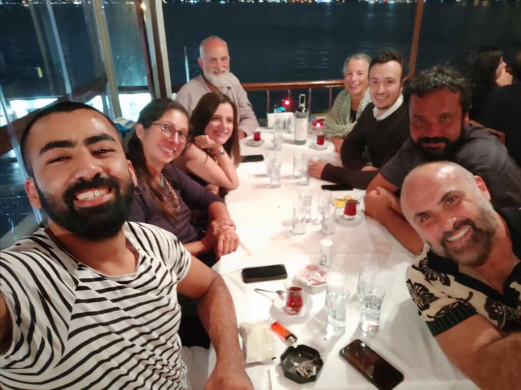 Dinner – what a treat. We had two groups of friends-met-travelling in Istanbul this week – our now friends once Eatwith “Istanbul Chefs” and friends we met on the train crossing from China to Kazakstan. Ata and Ahmet arranged the venue and we all turned up to find the perfect table overlooking the Bosphorous by night. Food and Raki kept coming and conversation was animated and fun. I kept looking around wondering how I got this lucky! Such a special night.