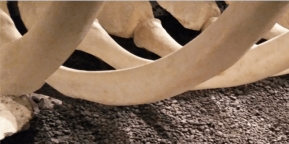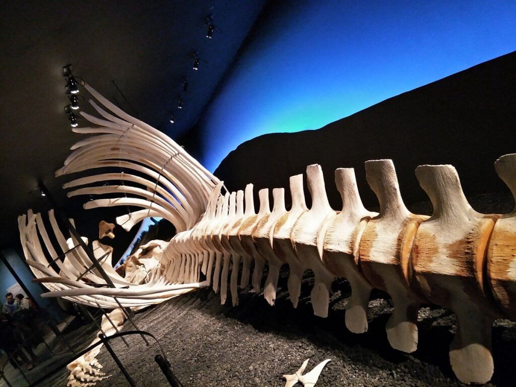 A large Blue Whale skeleton that died after beaching on an Iceland shore. It had been cleaned and its skeleton retrieved and reconstructed in the museum.