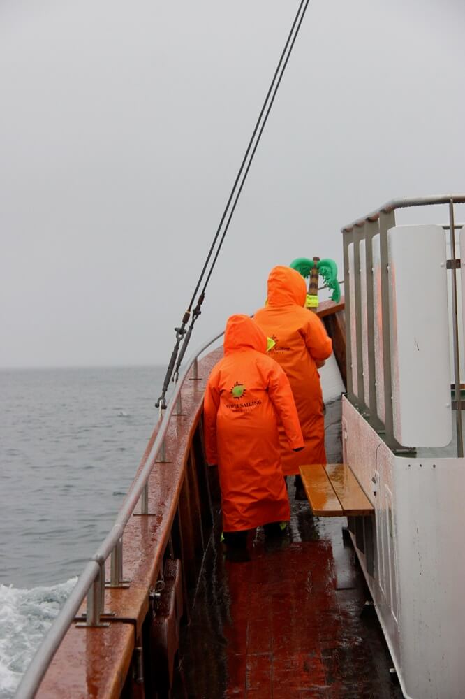 In addition to our winter layers we were given full padded suits (onesies!) plus a full length rain coat for weather protection. These proved cosy despite wet, cold and windy conditions out on the water. We headed out on Skalfandi Floi or Shaky bay – so named as it sits on a Tectonic plate and undetectable earthquakes are constantly occurring.