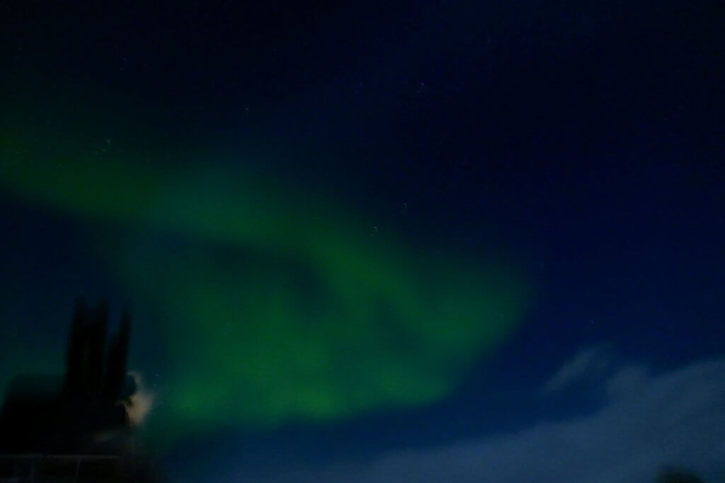 As the days went by, on our northbound voyage, we grew less certain about seeing Aurora Borealis – the Northern lights. As our friends last night drew near we commiserated at dinner as we simultaneously researched our next lights trip. A little despondently we headed to our cabins for the night thinking “Why bother preparing?” A cloudy sky with a low chance of a sighting.