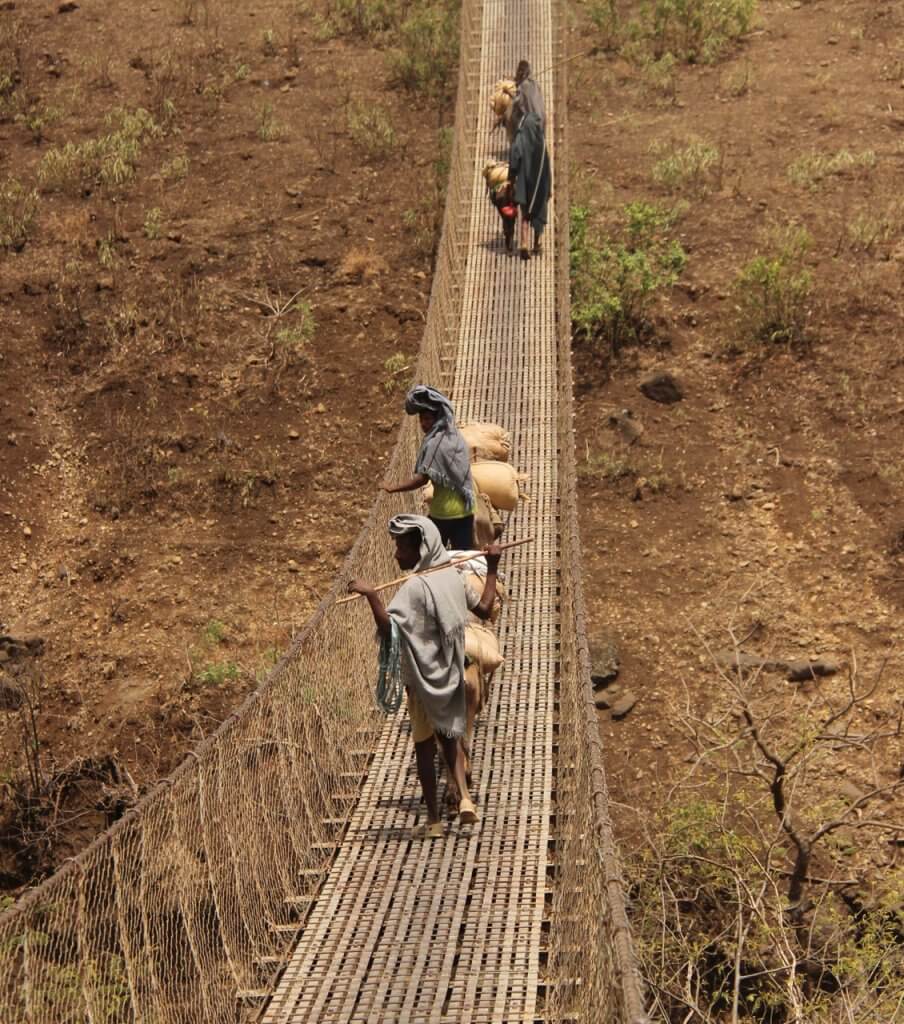 On the way to the falls we crossed a stone bridge built by the Portuguese in the 17th century.We walked to the falls past farms and kids going to school.Had to get out of the way to let donkey caravans go past!