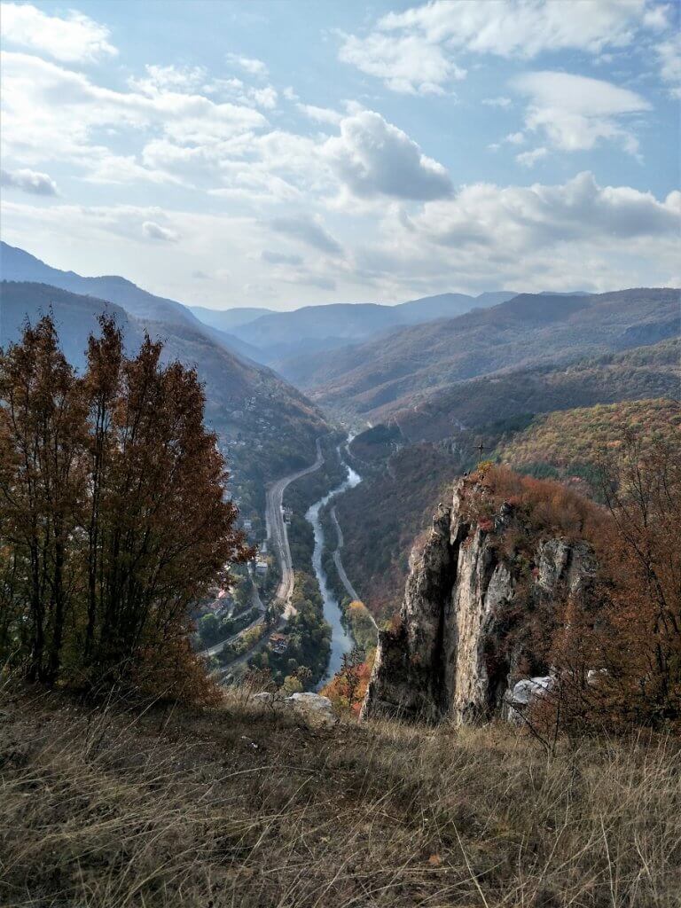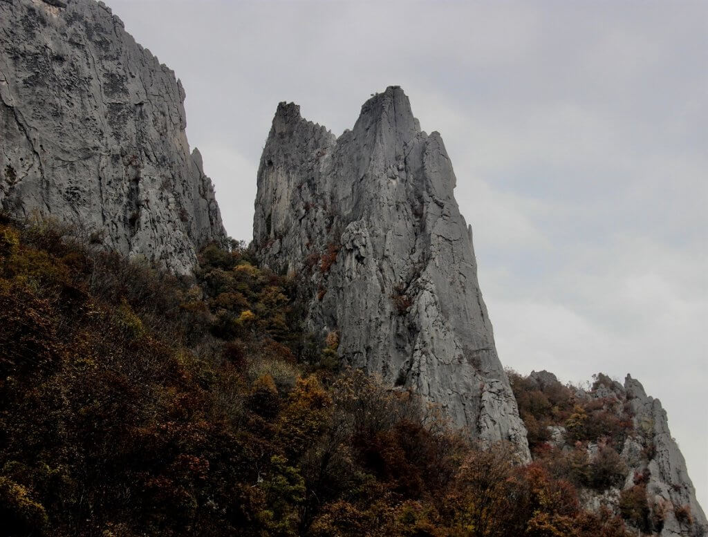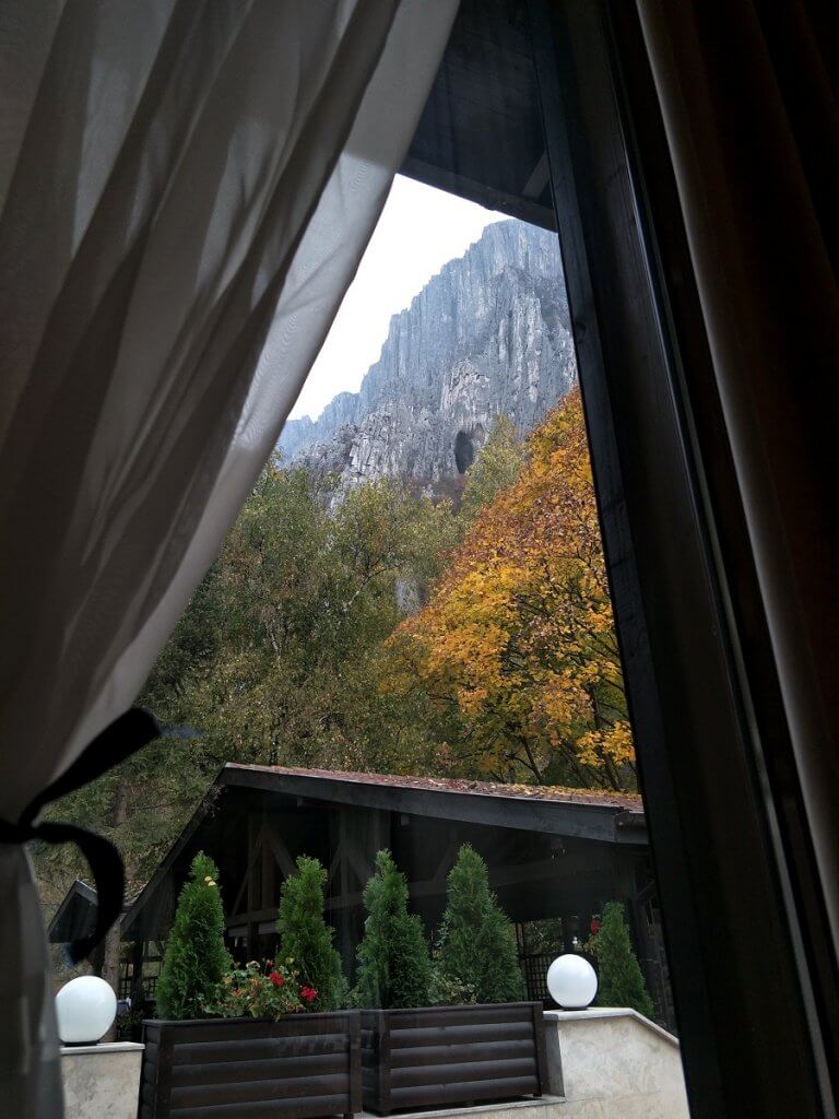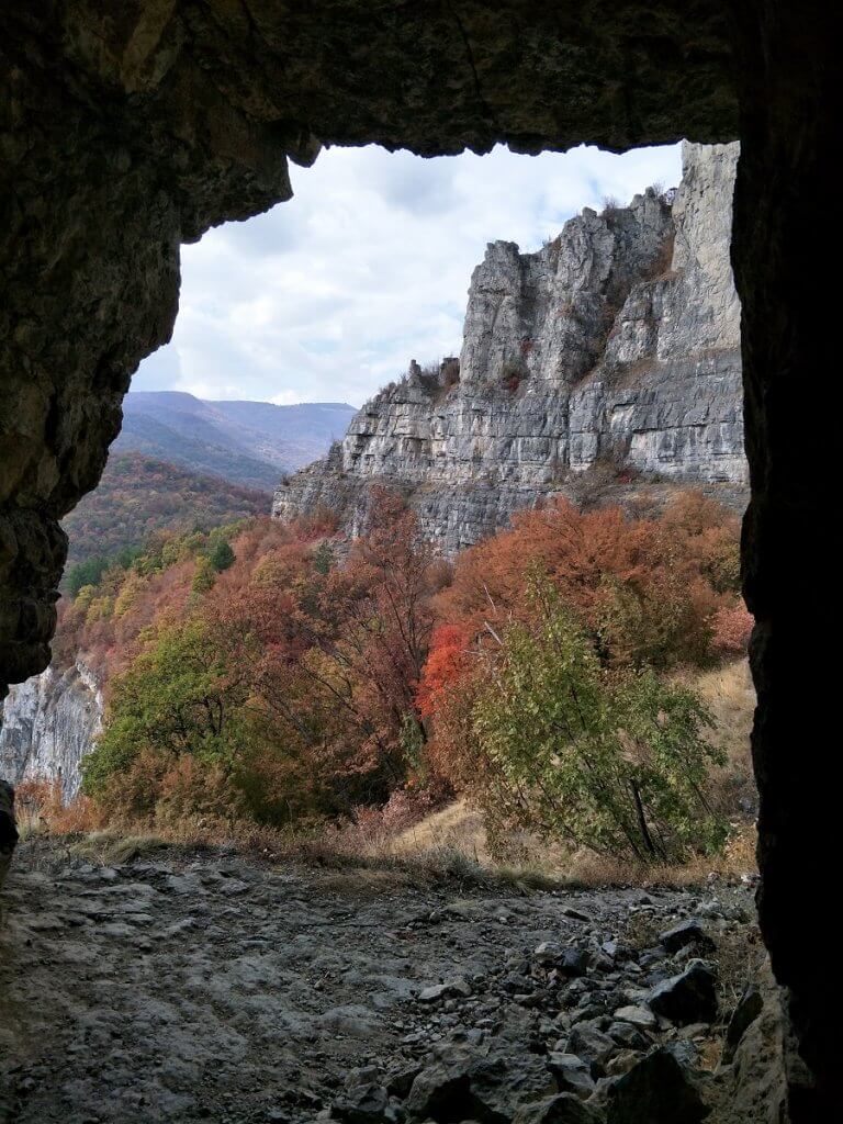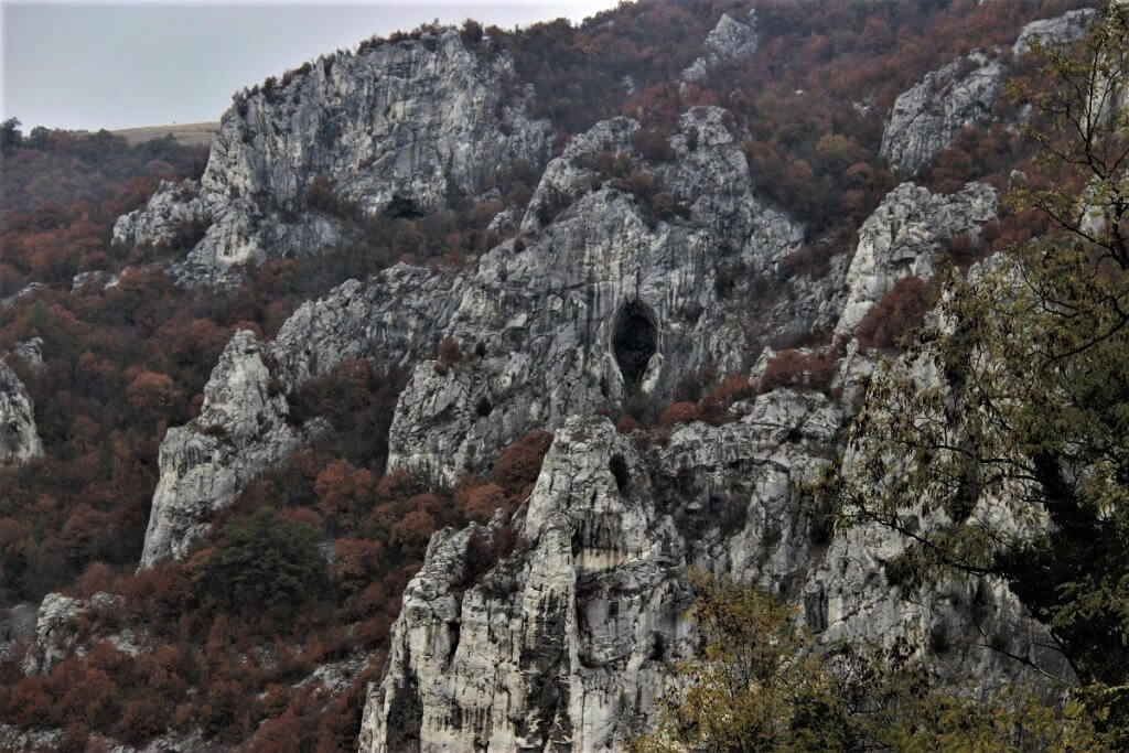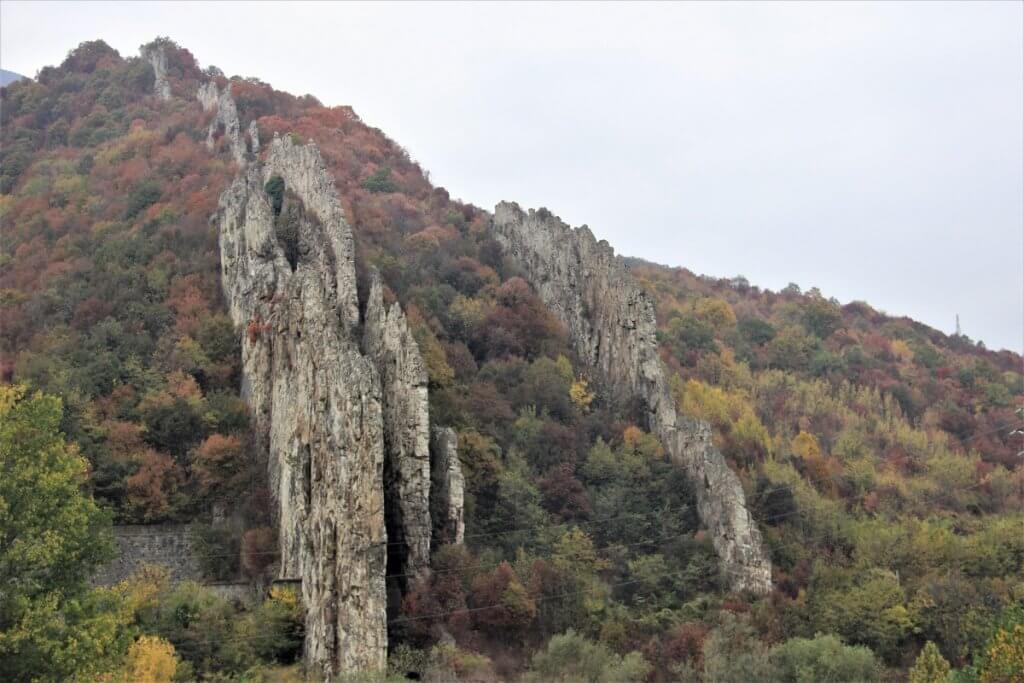 Finally levelling out as we travelled along the Iskar River Gorge, again surrounded by towering cliffs, and rock formations with the river accompanying us along the road. We passed formations that reminded of a Dragons back, passed white limestone cliffs pocked with caves surrounded with the red, orange, yellow autumn colours as the leaves changed with the seasons.