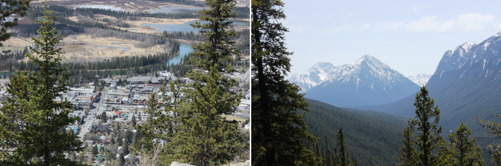 At the top – beautiful views of Banff, the famous Fairmont hotel, and then the other side of the mountain which was a river valley.