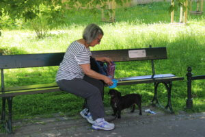 Melanie thought that it would be nice for us to kill two birds with one stone and take our doggie friend Benny for a four km walk around the green belt called Planty Park which circles the old town of Krakow.