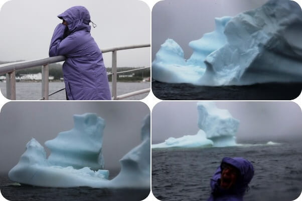 The boat ride was like no other. Jean and I up on the bow, dancing and screaming with delight. ICEBERGS – our first, the Atlantic sea, AND Humpback whales. It was cold. Not-enough-layers-cold!!