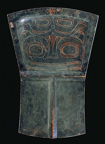 It was owned by a chief who in fact may have many and these we saw later represented on poles outside houses.They were used as currency and pieces could be taken off and given to others.It had a T shape which represented the strength of the chief the I representing his back and the cross bar representing his shoulders.