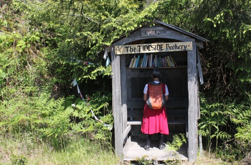 Anyway on to Skidegate a nice walk along side the water of about 5 kms one way.A surprise was the free lending library Mel discovered along the way. (Picture above)