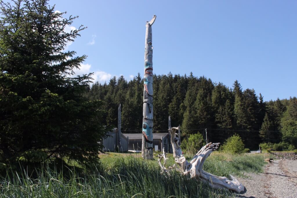 The museum is situated facing the beach with a small island just off shore along with some poles again the linkage of the Haida people with the sea is quite clear.