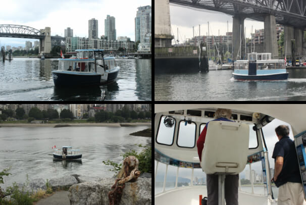 We then get on the most amazingly small ferry I have ever seen-they are like small insects and buzz around what is called the False Creek area.They are a really clever design with the skipper sitting on a high chair in the middle of the boat which allows for good vision and and the passengers to sit around the sides of the boat.