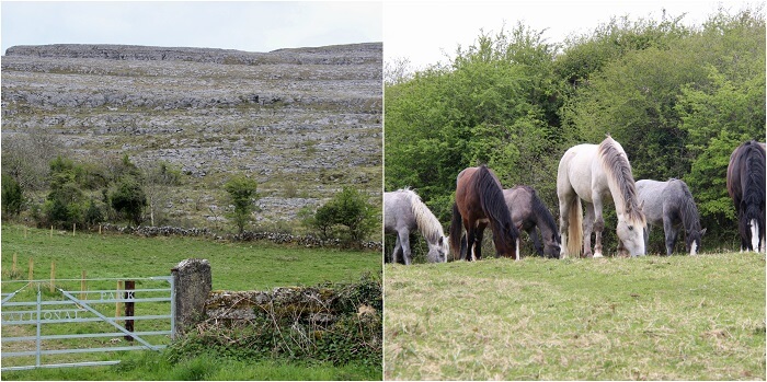 Travelling through the park we came upon a small pull off where we stopped for lunch with the Burren park on one side and a group of nosey horses on the other. Then on and on more endless L roads through the amazing countryside.