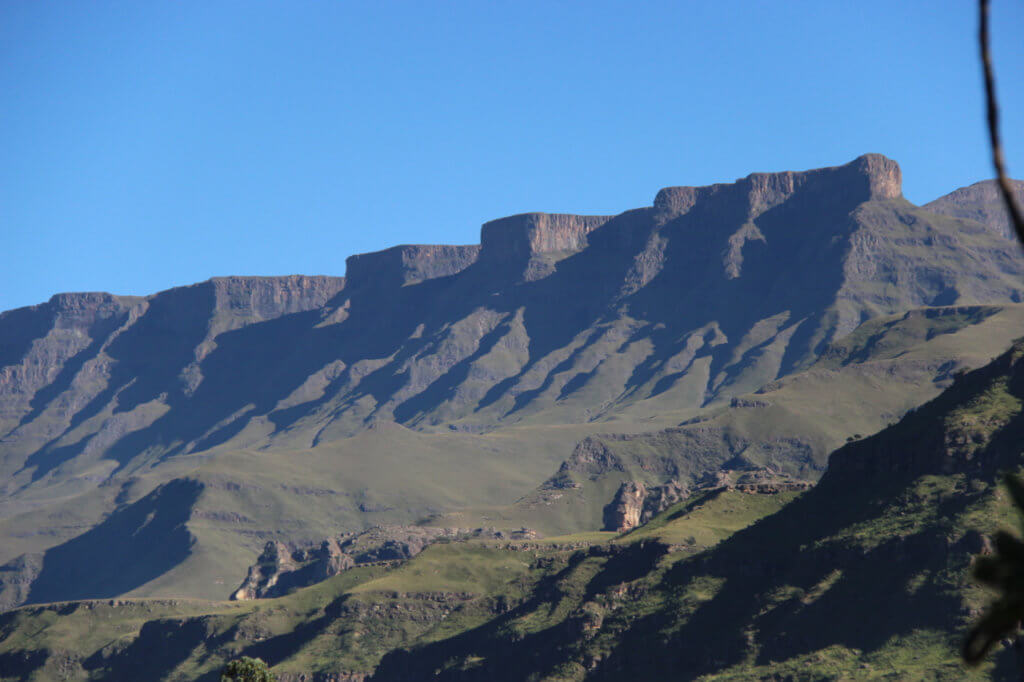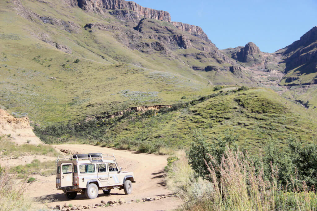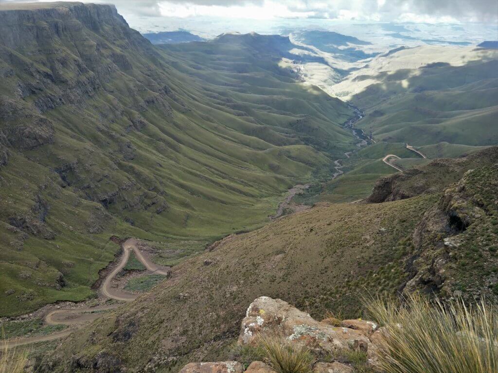 Up early and breakfast before meeting with our guide and driver Dane.A pleasant chap and extremely competent driver he wrestled the Land Rover up some of the worst piece of “road” I have ever been on.We travelled down the length of a valley with beautiful sandstone cliffs on either side then climbed on a zig zag road to the SA border post where we left SA until 8km later we entered into Lesotho. On that side the road turns into beautiful smooth tarmac courtesy of the Chinese.Literally metres over the border we dump the 4WD and start walking towards a summit to peer down into Sth Africa.After a strenuous hike however we decide to abandon the summit have lunch and sit in the sun.Our philosophy of “Scenery not Summits” being paramount!