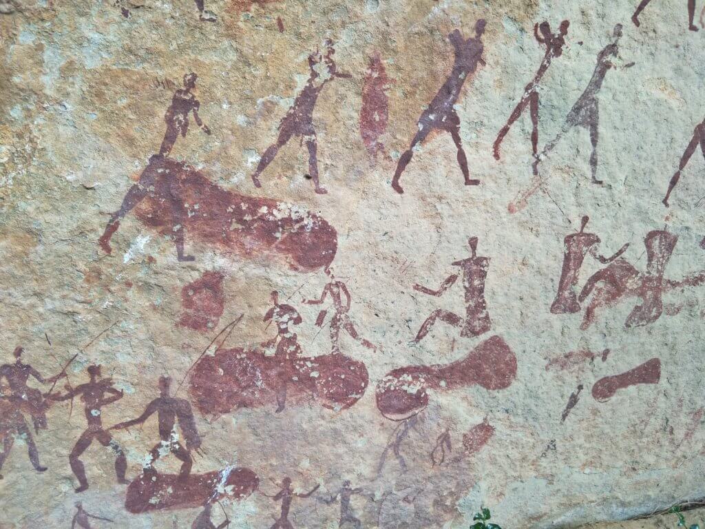 The paintings range from 2000 years to 200 years old.They are tucked into overhangs and feature elands and people and mythical creatures.Theories range from simply recording hunting scenes to describing altered mental states.Because of the fact that they are difficult to get to and you have to have a certified guide they have no railings or impediment to viewing-amazing experience.All up we walked 16kms well worth it.