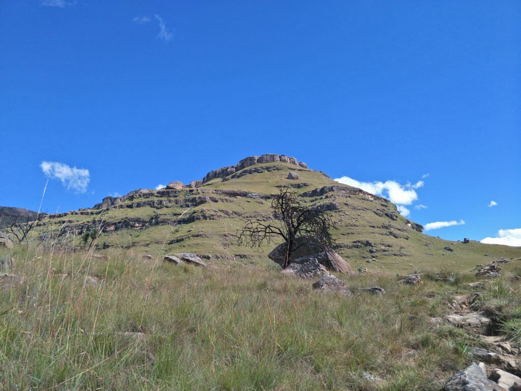 Up and after yet another brilliant breakfast we headed off on a self-guided hike. The day started out nice and mild with a bit of cloud cover and a climb up to a rock cairn. The countryside is a combination of grassland with weathered granite and sandstone cliffs.