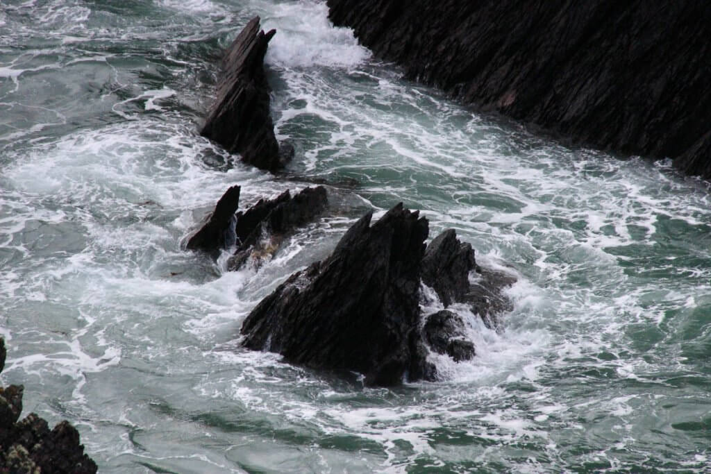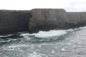 Up and out of the hostel fairly early to get on the road to our next overnight at Dunquin via Dingle.We leave the Cliffs of Mohr behind and keep to the coast arriving at a town called Kilkee which we knew nothing about.We headed down to the beach to a cafe and then went walking along what turned out to be what Ireland specialises in-dramatic coastlines.
