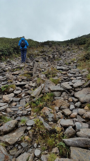 The final stretch was over loose rock with water flowing along it.