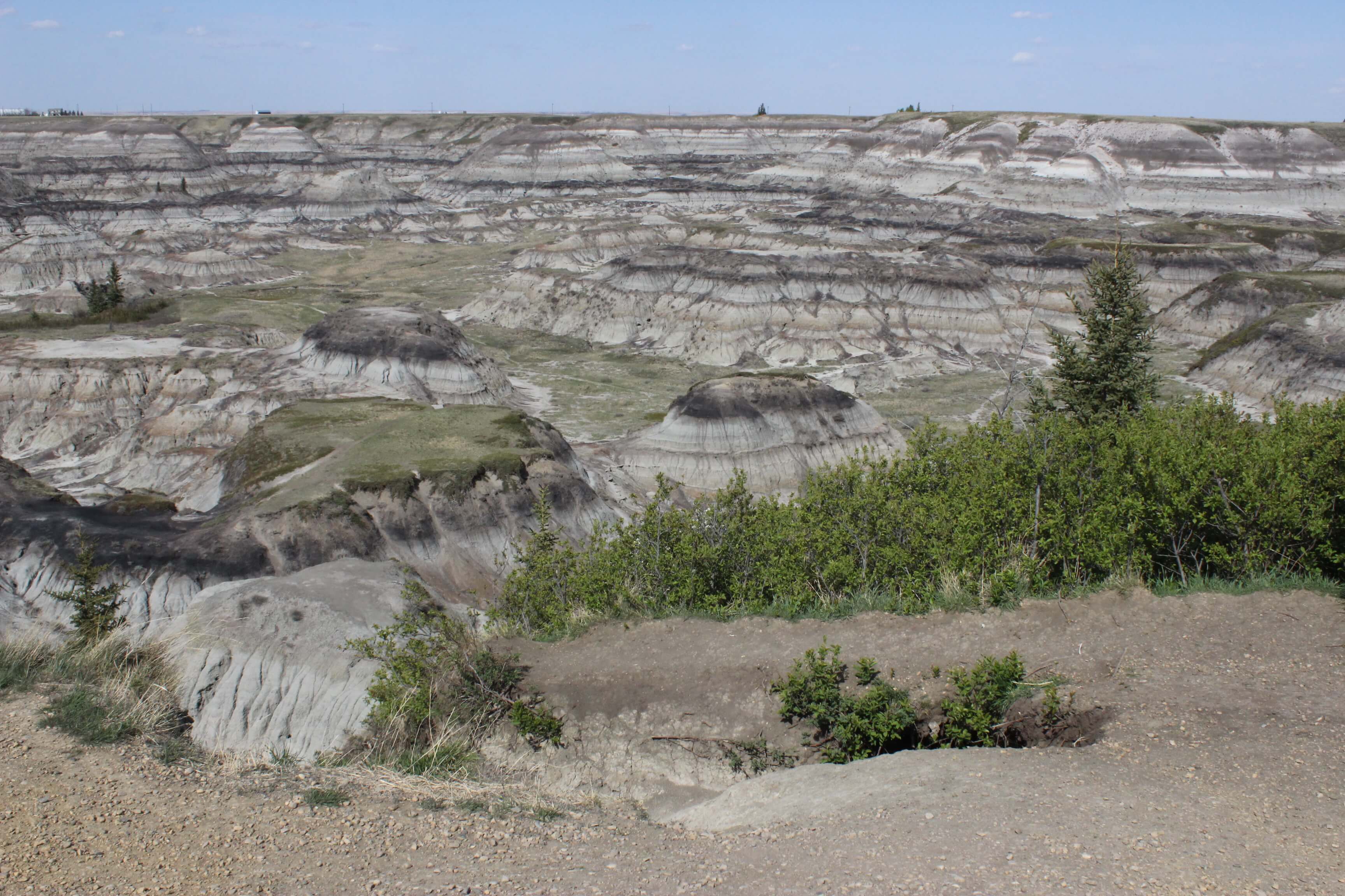 Sunny day, blue sky, badlands – pleasant drive. A bit distressing to see industry built in amongst the ancient rocks along the road side.