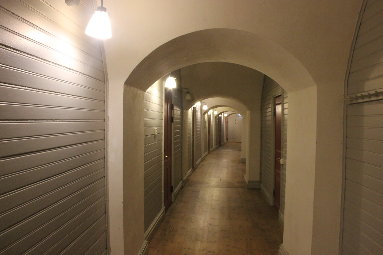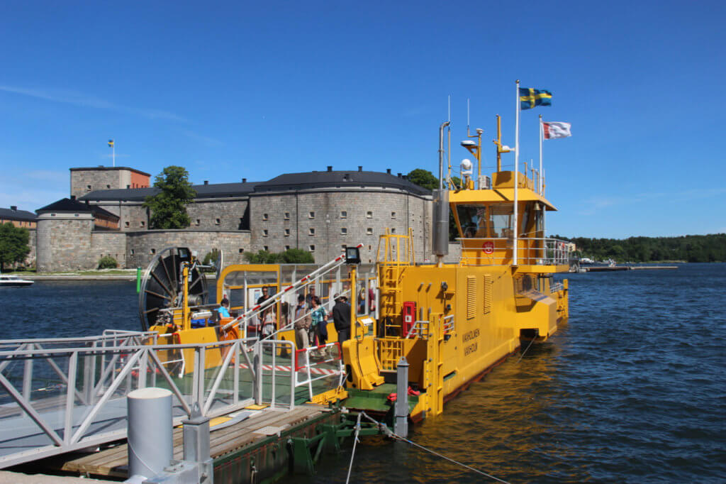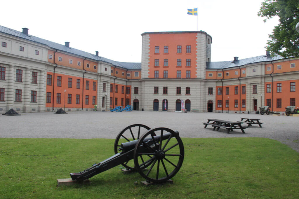After a pleasant ferry ride we arrived in Vaxholm and caught the ferry across to the fort which took all of three minutes.The fort itself is very impressive with a central courtyard that we had to cross to access the B and B.The fort was started in the 16th century and was built in conjunction with other fortifications in the archipelago.In fact at one time one side of the islet on which it sits was filled so that the channel could be closed off to ships.This meant that to get past the fort required ships to go by the side where the cannons were placed.This was a successful strategy as the Poles Danish and the Russians both failed in their attempts to get by the fort and on to Stockholm.Its strategic location earned it the title the “padlock of Stockholm”.