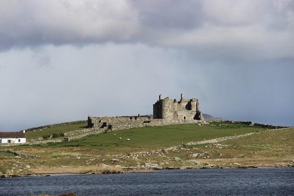 Bunowen Castle –the ruin of this castle appeared on the horizon as we drove out to the coast. It looked particularly ominous on a bleak cloudy day. Its identity was only found with a Google search later.