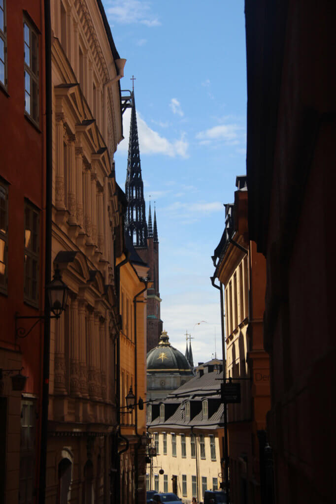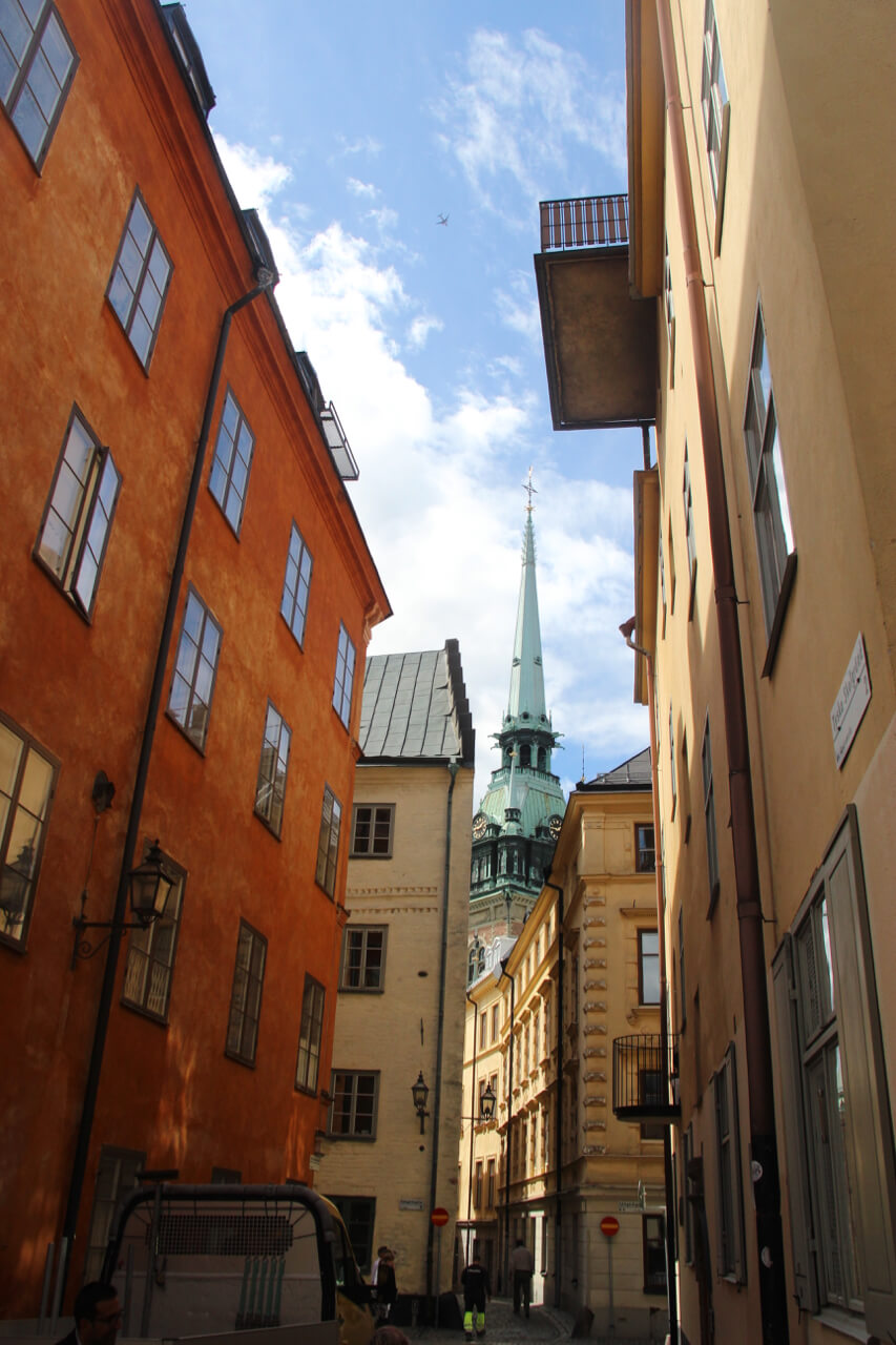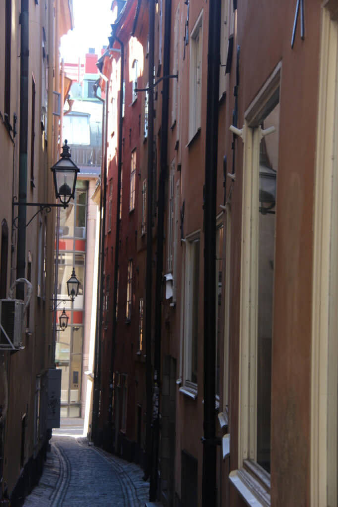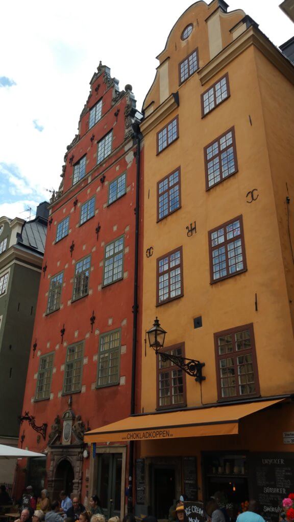 Today we set off to explore the famous “Gamla Stan” or old town of Stockholm.To aid us with an itinerary we used the handy guide provided by the National Geographic. See National Geographic Walking Tour To enter the precinct one has to go over a bridge which emphasises that Stockholm is spread over several islands of which Gamla Stan is one.The first impression we got was the number of tourists which up to this point we had managed to avoid ,but this is what happens when you visit one of Europe’s best preserved old towns.The colours, narrow streets and architectural oddities all in one place make for a thoroughly enjoyable amble and the hours disappeared as we discovered new sights around each corner.