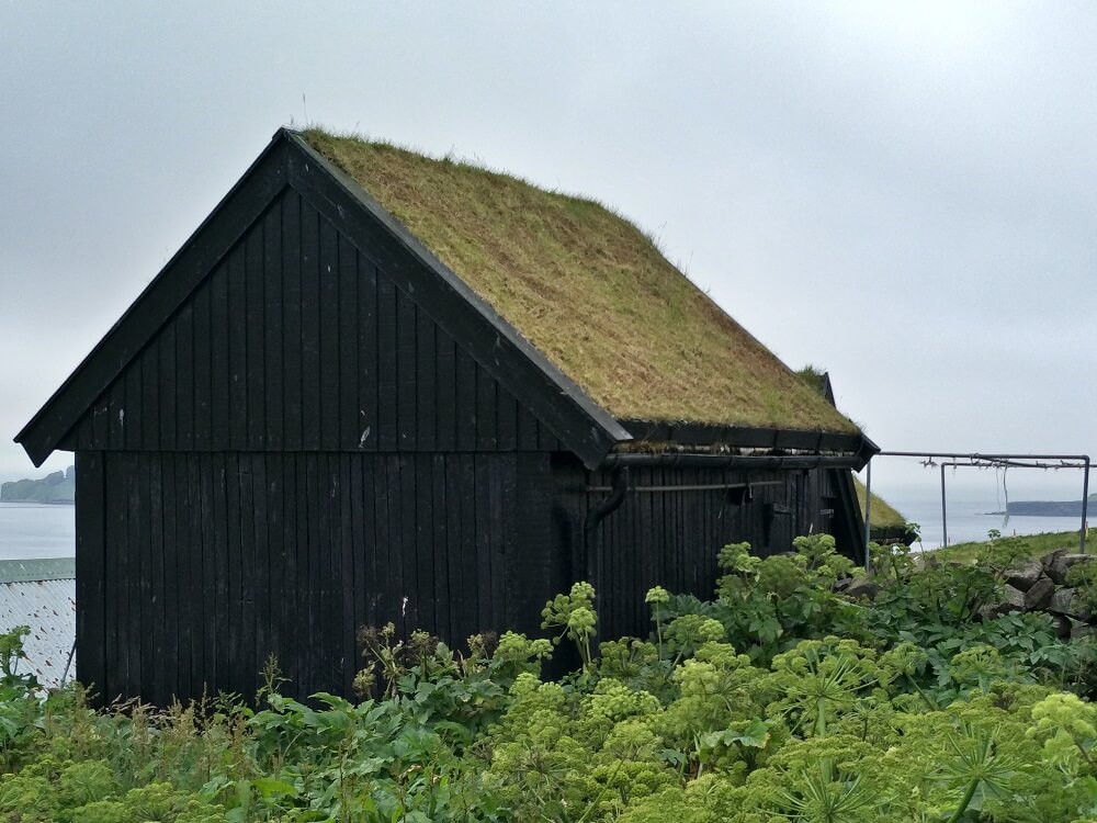 Once at the village and out walking, all driving fears disappeared. It was windy, chilly but the steep dark cliffs covered with vivid green grass took your mind from anything else. The little village filled with turf roof houses and black board walls standing out on the green paddocks around them.