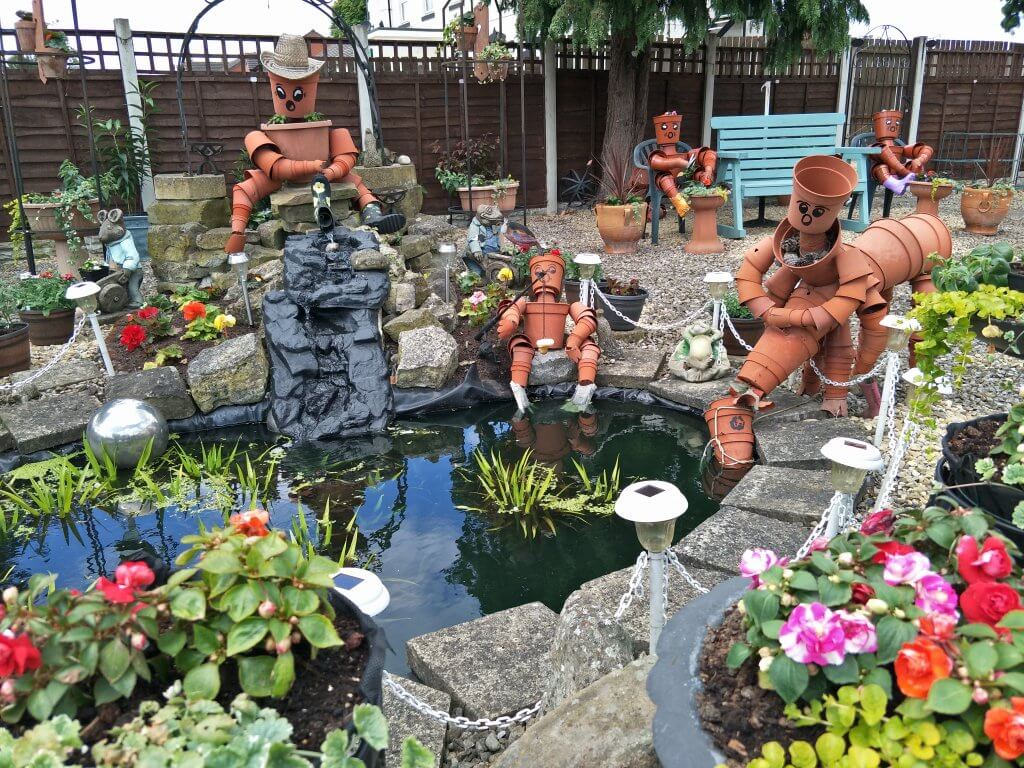 The name “Potty Cottage” comes from the award winning garden surrounding the property which features all kinds of characters fashioned from-You guessed it-garden pots.Val and Nick’s grandmother created the garden and used it to raise money for a local charity.Over the time they have had it they have raised more than twelve thousand pounds by open days.They also have a box at the front of the garden where people continue to donate as they walk past.