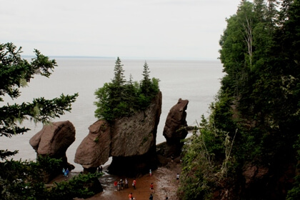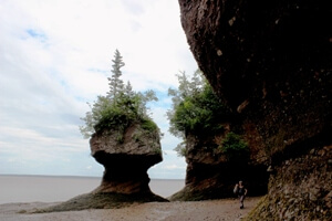 Over thousands of years, the Bay of Fundy’s rapidly rising and falling tides have shaped the coastal landscape. The Hopewell Rocks are also called the Flowerpot Rocks shaped by glaciers, wind, rain and the highest tides in the world.