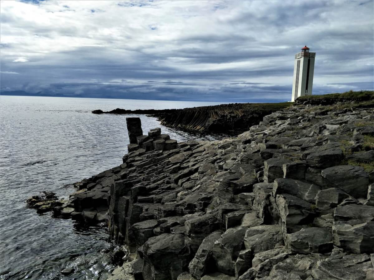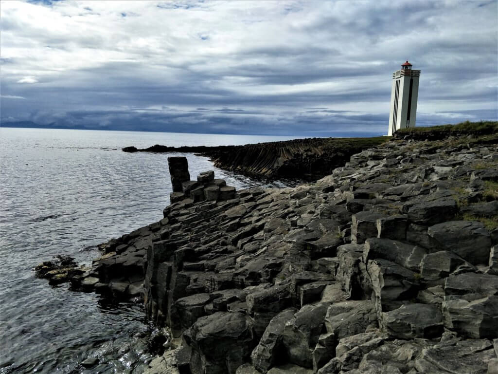 Kálfshamarsvík Basalt Columns – three of us opted to remain near the car park after Terns attacked and drew blood as Gerd ventured through the field to the coast. Not to be deterred he re-entered with sticks held aloft which did not prevent the dive bombing but prevented bodily harm! The three of us remained out of attack range until Gerd returned and said it would be a big miss not to see the columns.