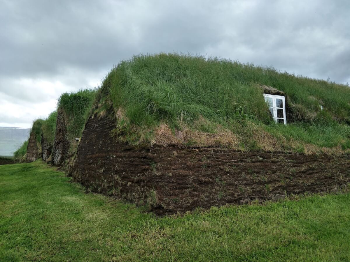 Picture perfect turf buildings – waves of grass topped rooves and patterned turf walls. Surrounded by snow capped mountains even in midsummer.