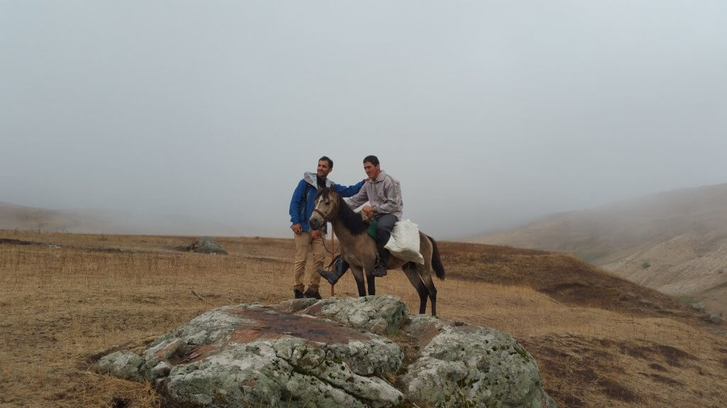 After which a walk in the mist. Darius was our guide for the area beginning at small village that has existed since Zoriastrian times. From the village it was a beautiful misty walk across gentle hills and through farms to the Sareyn hot springs. Farmers and horsemen appeared out of the mist as we crossed the gentle rolling terrain, at times barely being able to see our travelling companions ahead or behind us.