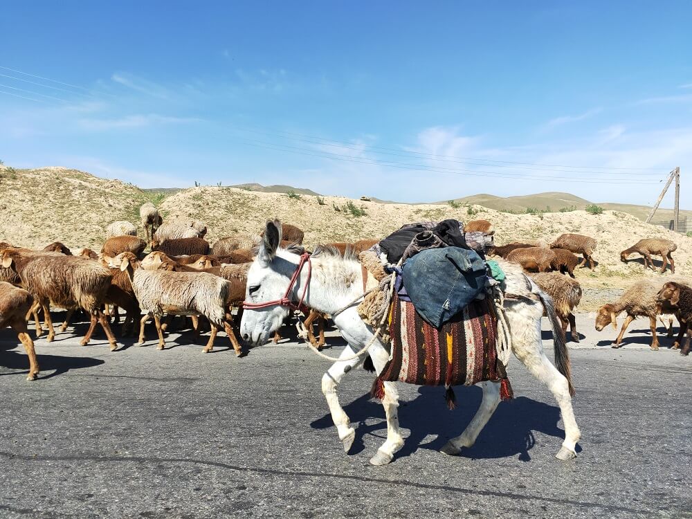 Leaving the city limits we came to a road filled with sheep and their herders on the way to the mountains for summer. It was ancient meets modern as the ancient shepherding met with modern cars in a hurry to get somewhere. Horns tooting, cars overtaking 3 abreast with no place to go, the donkeys and their load keep on plodding forward while the sheep go in every which direction.