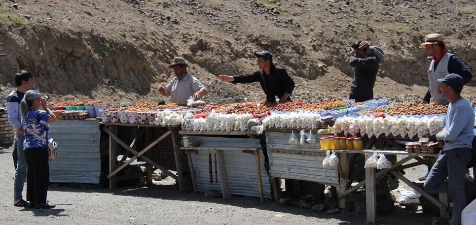 Other local experiences included stopping at a small local dried fruit and nut bazaar in the middle of the mountain pass where we tasted and bought a selection of delicious nuts and apricot products including woodfired apricot kernels. While competition was tough for the sellers there was only camaraderie and co-operation amongst the sellers. Sharing sales with each other. No haggling. No tourist prices.