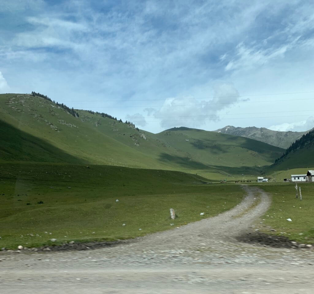 We drive into a different landscape away from grasslands past green valleys. The road was often blocked by livestock being herded down the road by young boys on horseback.