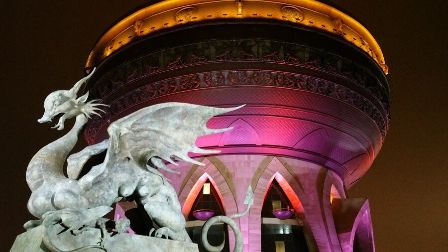 After seeing it from above we visited the Family Center of Kazan – a marriage registry. Built as media centre for the games but not used for that purpose. A purple building lit up at night, the shape of a Kazan ( a traditional cooking pot). It is surrounded by 4 huge statues of mythical beasts. It really defies description, as a wedding venue-I will leave it to the reader to see the photo and make up their own mind.