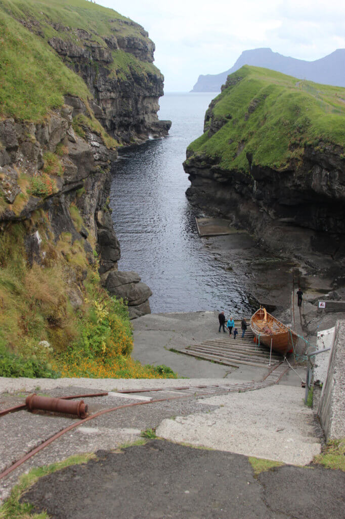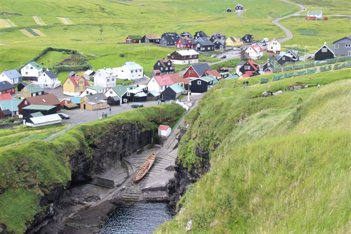 Gjogv – a picture perfect town with a waterfall and a gorge cutting inland to the town. Hiking up the hill along the cliffside we had a birdseye view down on the gorge and the little town, the surrounding hills, sheer cliffs and jagged islands seaward.