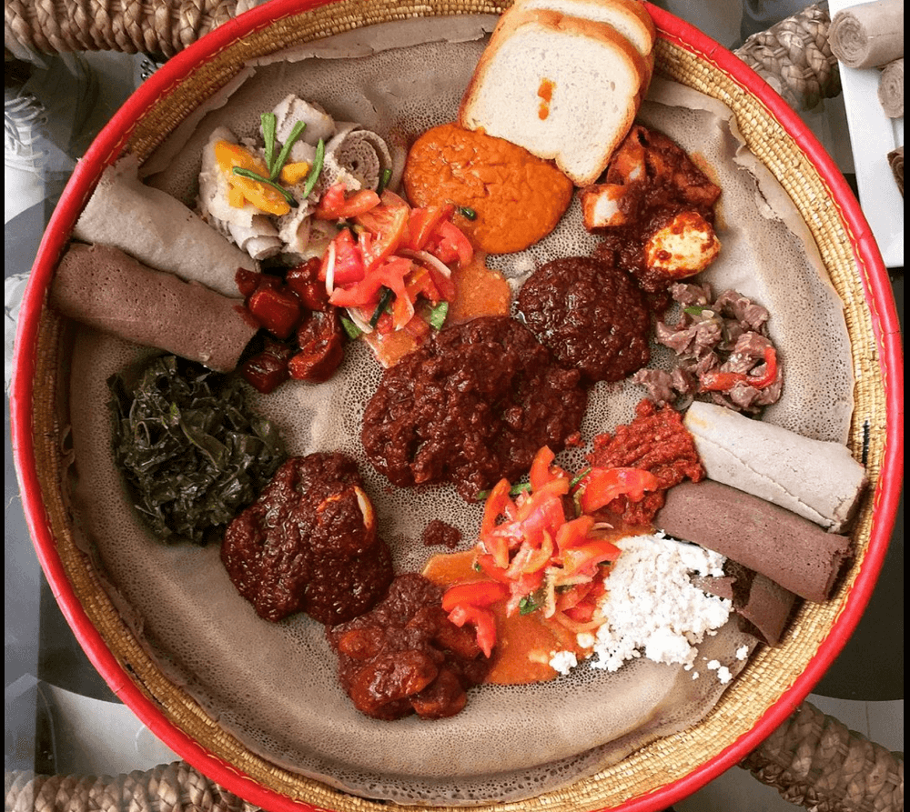 The final leg our our Ethiopian journey was a flight from Arba Minch back to Addis Adaba where Eskinda picked us up and we showered him with our stories and excitement. After a spell in the now familiar (3rd night) Marigold Hotel Eskinda took us out for a final dinner at Kategna Restaurant – a large basket tray of delicious morsels surrounded and lined with Injera.