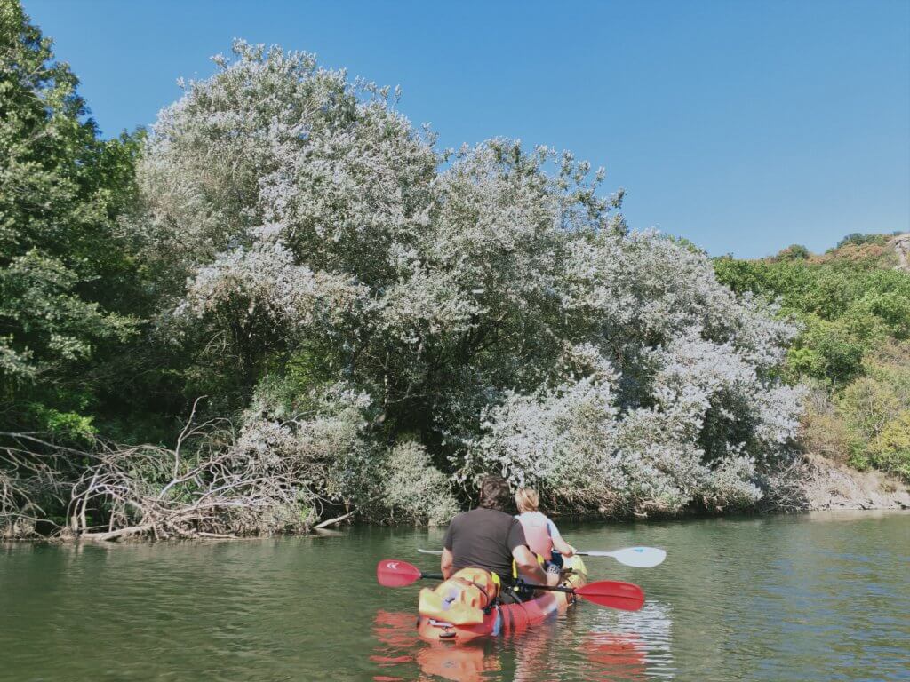 After a drive to the banks of the Arda River, we put in our kayaks and had a wonderful easy paddle down the river past amazing volcanic rock formations. At one point stopping to fossick on the river bank to see examples of semi-precious stones such as jasper and chalcedony.