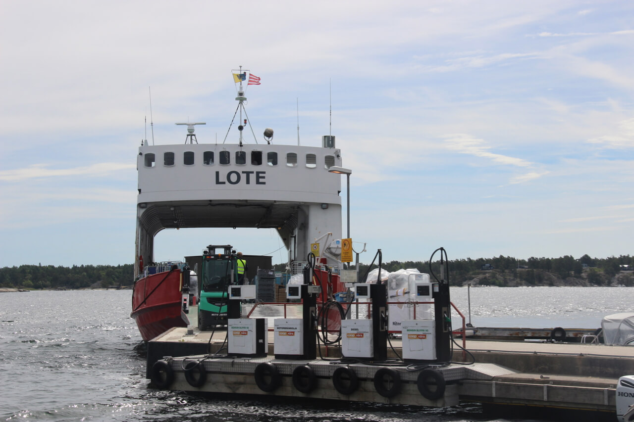 Next day packed up and made our way down to Berg for the 1130 Ferry to Vaxholm and the excitement of staying in a fortress overnight.While waiting for the ferry you could see the reality of the logistics of catering for an island life, with drive on drive cargo ship, bustling forklifts and the local postie loading up.