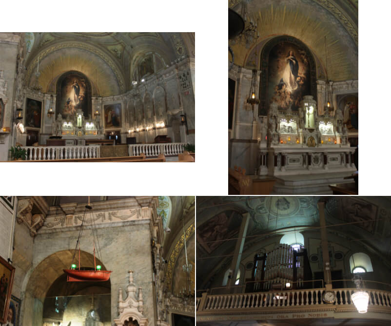 – the Seaman’s church – more Frenchly and romantically known as Notre-Dame-de-Bon-Secours Chapel and Marguerite-Bourgeoys Museum. A more understated than the Basilica with beautiful pews that were simply etched at the end. A light honey wood – maybe birch wood. Chandeliers hanging interspersed with boat shaped lamp holders suspended around the church. And again a gentle organ playing throughout our visit.