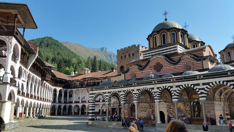 A rare cloudy day for Day 3 as we headed to our next mountain range – Pirin mountain range. On the way we crossed to the other side of Maliavitsa to visit Rila Monastery, a UNESCO World Heritage Centre, founded in the 10th century. The monastery is a long way from the original simple life of St Ivan (John) an ascetic who lived humbly in the mountains.