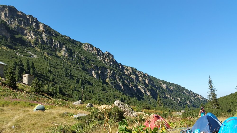 Back to the hut where a small restaurant served a simple menu, with a simple and delicious meatball and the now regular Shopska salad combo. Sitting at the hut began a pattern that was to continue throughout the week. Nadia finding friends in unlikely places, the frequency became a source of fun between us and a bonus to our trip. This time it was climbing colleagues one of whom was still suffering from a severe injury. After lunch we adjourned to the climbers “base camp” and relaxed in the company of the rock climbers until it was time for us to descend.