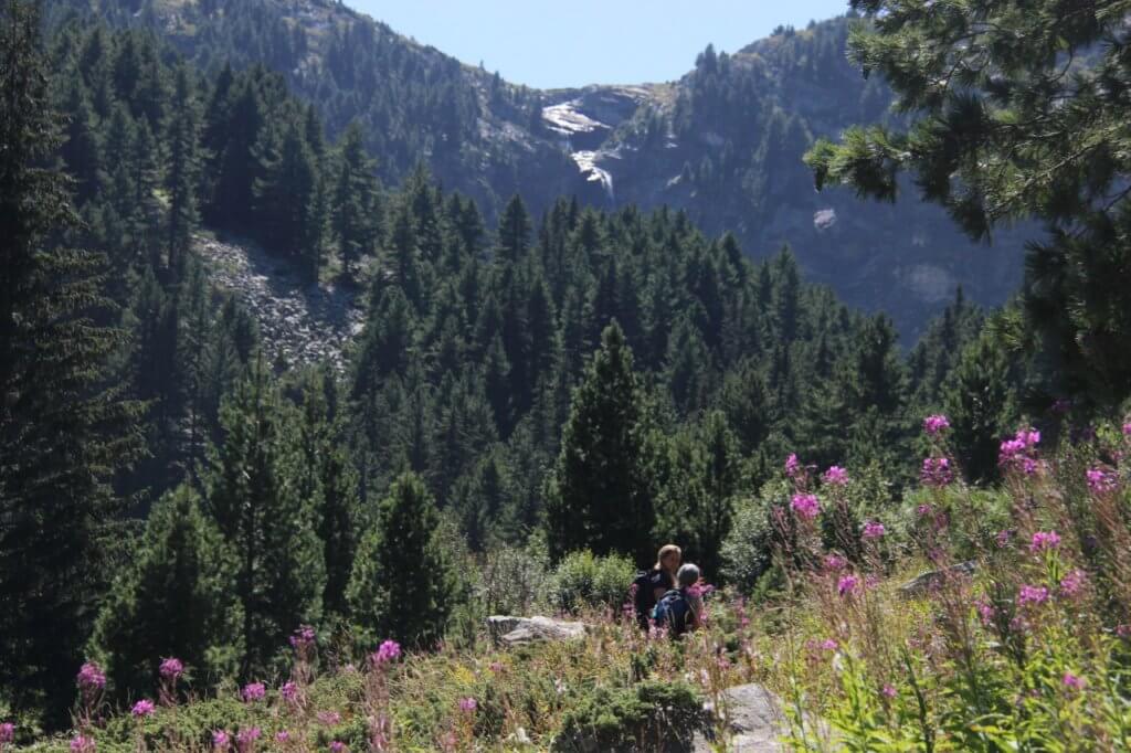 Once there – time for a quiet sit to enjoy the view back down the valley with mountains towering over us, and the valley dipping below us – the 60 foot falls cascaded down above us.