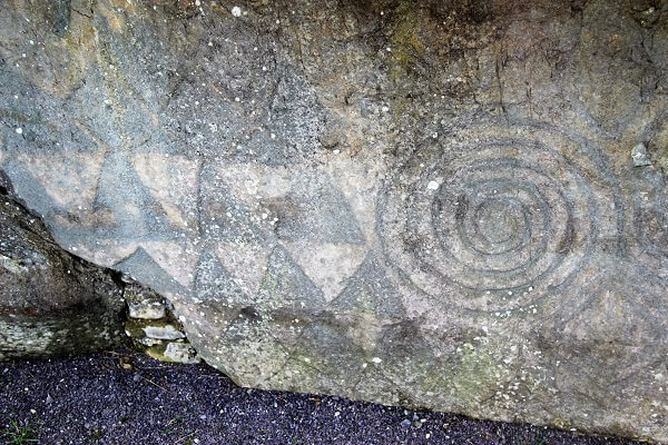 Then on to Newgrange a stunning and controversial structure. Controversial because some believe the reconstructed panel of quartz and egg-like stones is unlikely to be original. Also contentious is the sun window above the entrance – some say it is 5000 years old some say it was constructed in the 1960’s during reconstruction of the front.