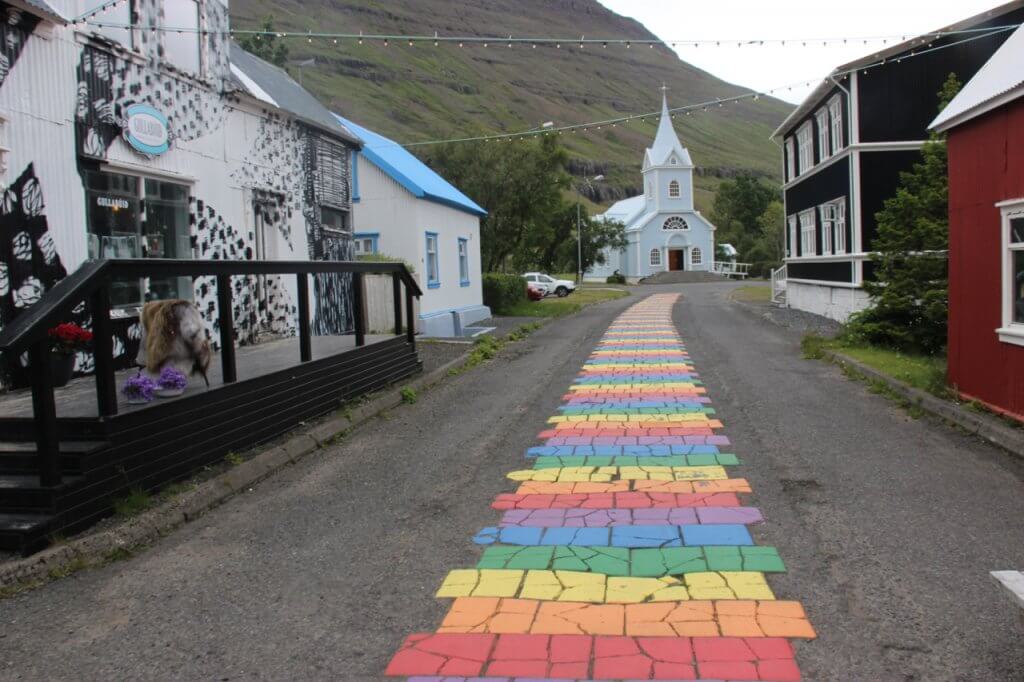 The town itself has been made into an art precinct with cute old buildings made into galleries.In the cobbled street in this precinct is a rainbow stretching down to the church.