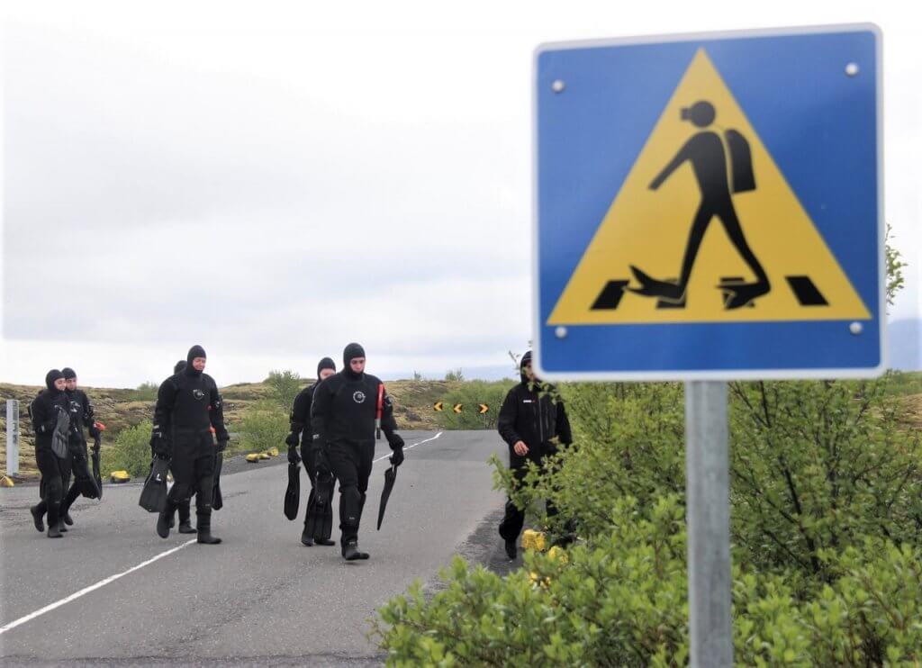 As we returned to the car the Caution Divers sign we had noticed fulfilled our photographic wish by timing it perfectly for a group of divers crossing the road. It takes a lot of getting used to having daylight all night and therefore tours well into the evening.