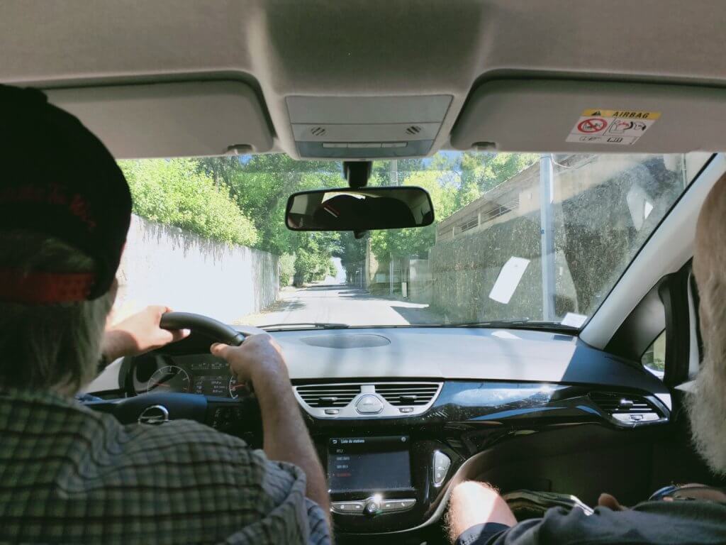 In Orange, we were to pick up a hire car. After a cab ride from Chateauneuf du Pape, we breakfasted at a friendly Boulangerie in the theatre square. While chomping on our Croissants we discovered the car pick up was 3km out of town. Bolstered by coffee, croissants and breakfast tarts we stumbled along the highway to the car hire. The woman in the garage-cum-car-hire showed some surprise at seeing four tourists show up on foot.