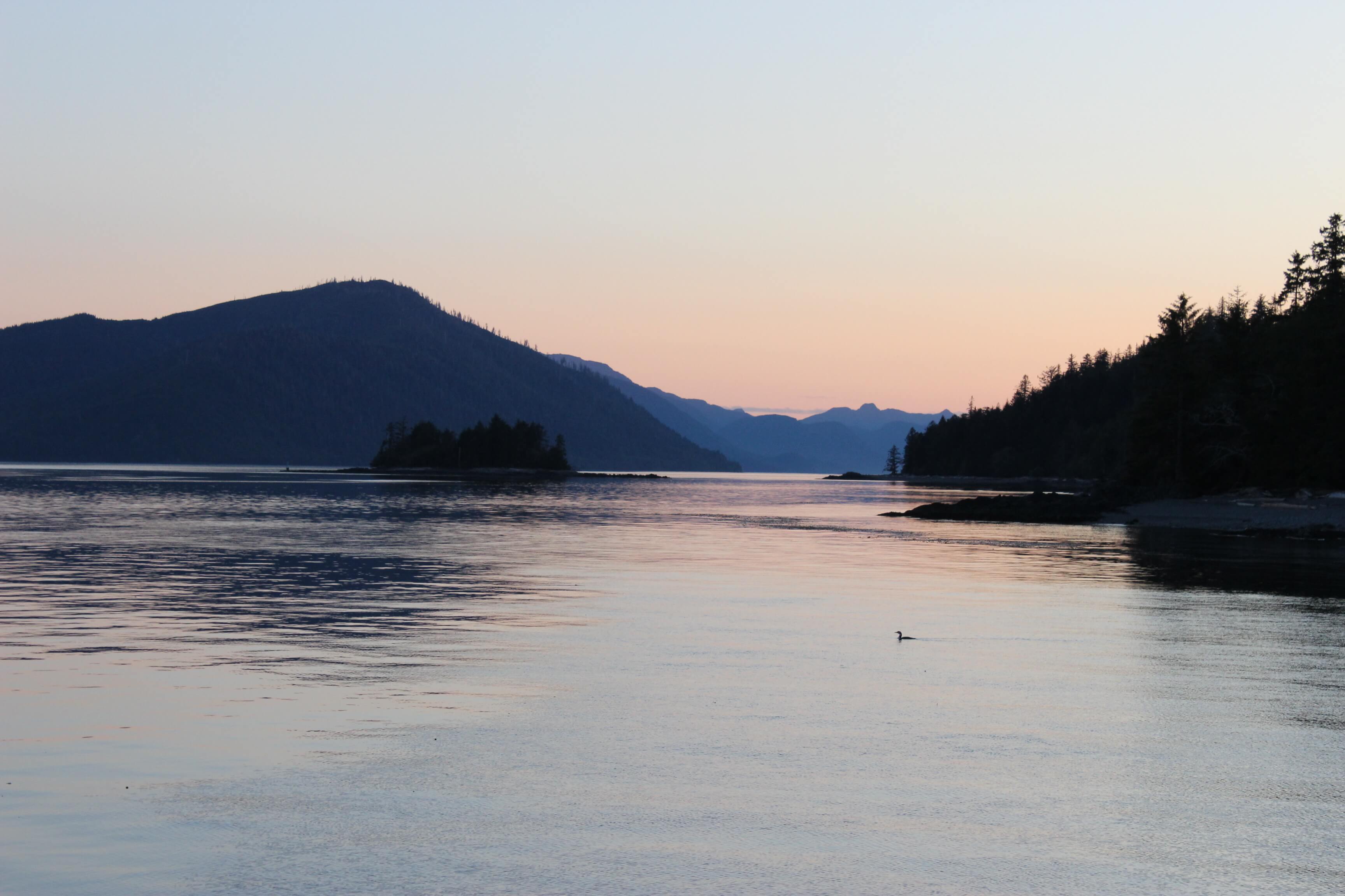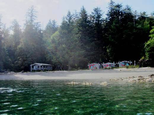 Paddling around the coast through clear green water we passed by Haida decorated buildings which we later discovered was the target Swan Bay Rediscovery Centre for young people to reconnect and discover their Haida heritage and culture.