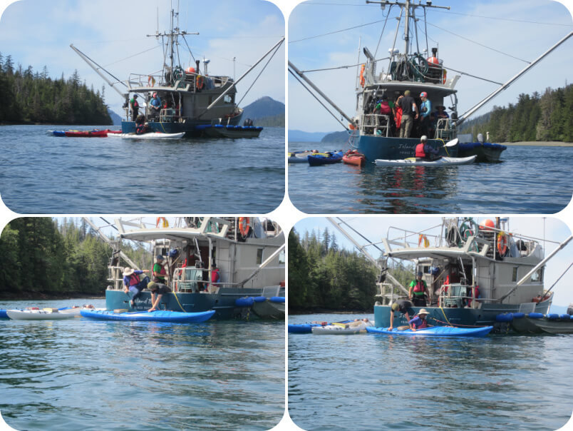 Entering and leaving kayaks from the back of the boat was initially a bit of a challenge and mostly inelegant: