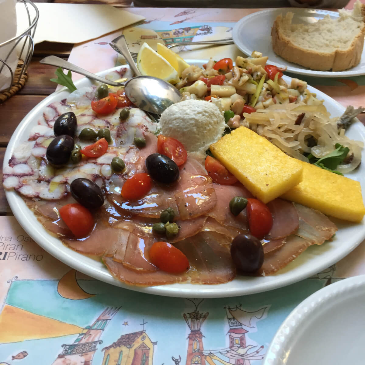 Waterfront seemed the place to find a spot for lunch and what a spot it was. Gostilna Sidro – a covered outdoor restaurant beside the seaside with fun staff. Fresh seafood and a little Slovenian beer to help the digestion!